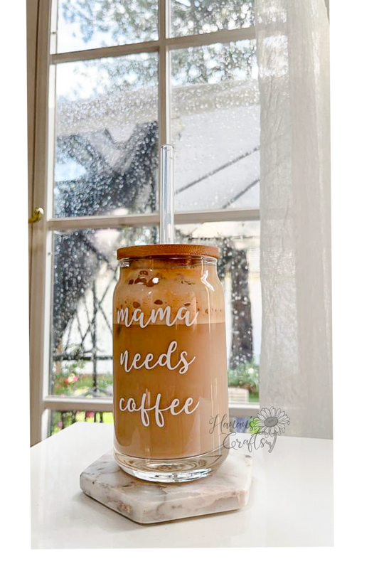 Mama Needs Coffee, Baba Needs Coffee 16oz Glass Cup